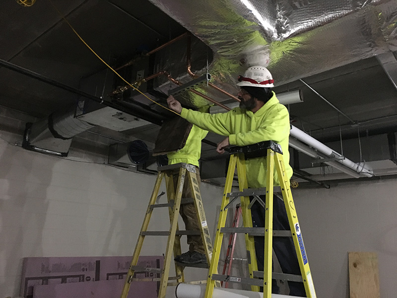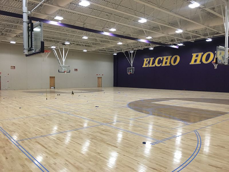 EDS Builders has the Elcho School work 'way' ahead of schedule. The board wanted to open Gym for the first basketball game(end of Feb) and this was not originally feasible. But Construction Manager, Doc, owner of EDS Builder DID IT! Because of being an engineer himself, he is able to work very closely, on site, with the site engineers! They realized they could tap into the existing boiler and could start the project 3 months early. The finished mechanical system was running on the existing boiler so the floor could be started in December 2017 and finished in Jan 2018.
