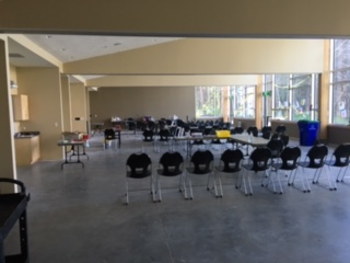 large room for gatherings, weddings, etc. A relaxing fireplace is located in