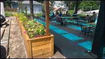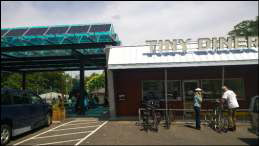 Metal paneling and sign were added to give the Tiny Diner a 1950’s look. Bicycle racks for neighborhood diners.